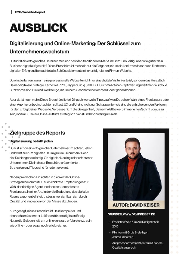 Tragen Sie sich kurz ins Kontaktformular ein und holen Sie sich jetzt den kostenlosen Website-Report (24 Seiten PDF).
